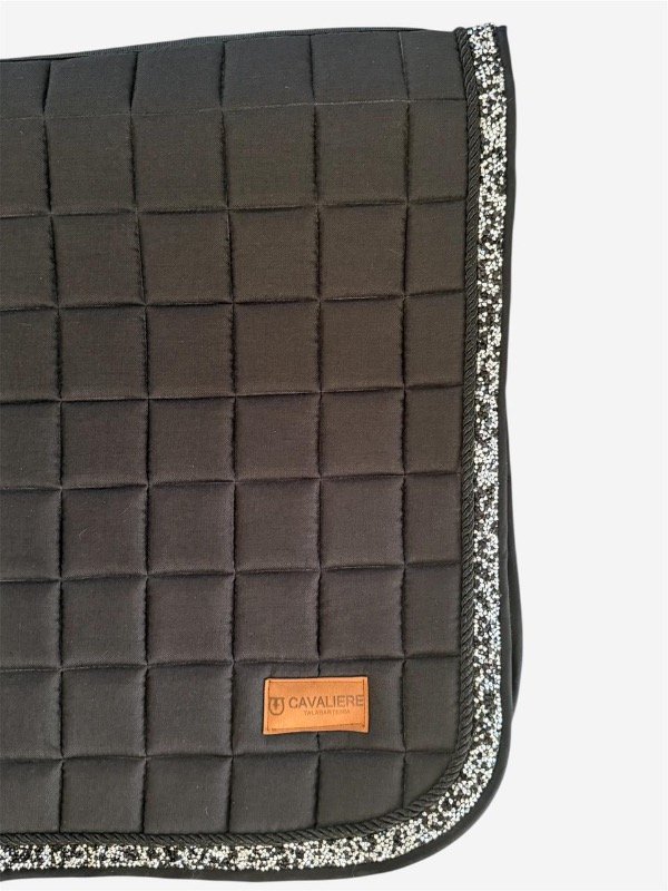 Su acabado en tono negro aporta una estética sobria y sofisticada, fácil de combinar con cualquier equipación. Destaca el ribete decorativo con detalles brillantes en contraste, que añade un toque distintivo y refinado sin perder elegancia.