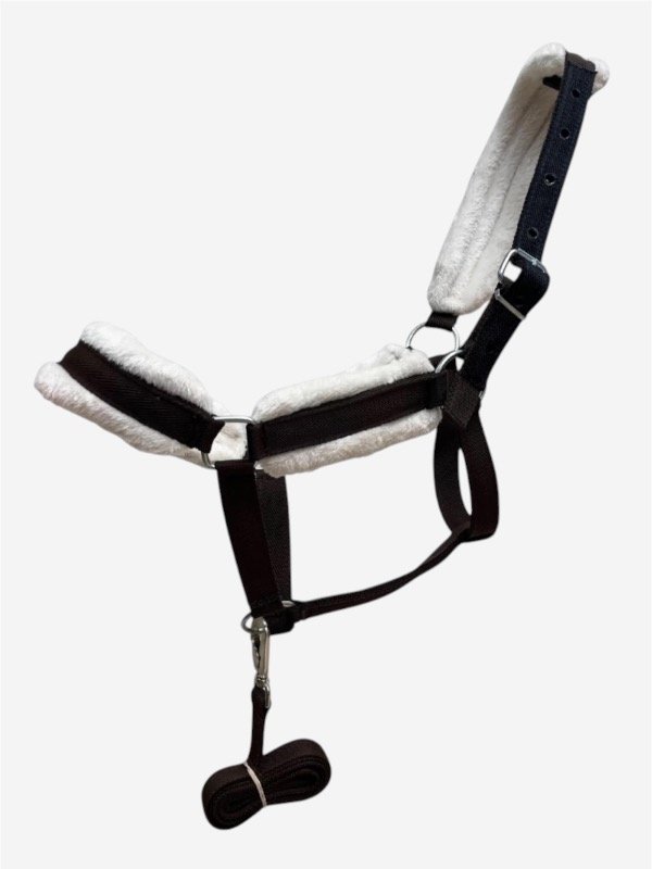El cabestro acolchado Tesalia está diseñado para brindar comodidad superior al caballo sin dejar de lado resistencia y funcionalidad. Su interior con suave forrado tipo corderito protege las zonas sensibles, evitando roces y proporcionando un ajuste confortable.