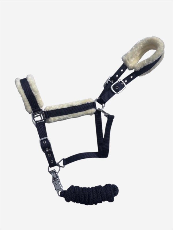 Fabricado en nylon reforzado de alta calidad, ofrece una gran durabilidad sin sacrificar la comodidad del animal. Sus zonas de contacto —testera, muserola y mejillas— están acolchadas con corderito sintetico ultrasuave, evitando rozaduras y proporcionando una sensación agradable incluso durante usos prolongados.