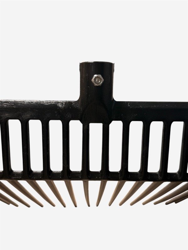 Horquilla resistente y ligera, ideal para la limpieza de boxes, corrales y transporte de estiércol o viruta. Su diseño ancho con púas largas permite recoger mayor cantidad de material mientras deja caer el exceso de arena o tierra, facilitando un trabajo más rápido y eficiente en el establo.