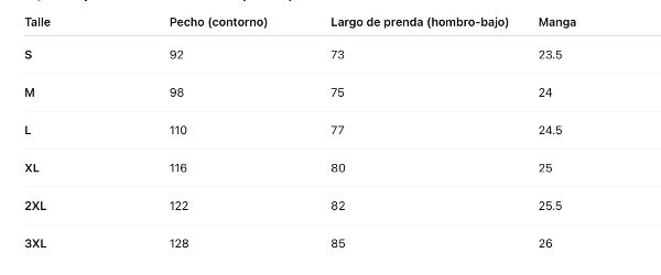 • Si te gusta que quede más holgada, subí un talle.